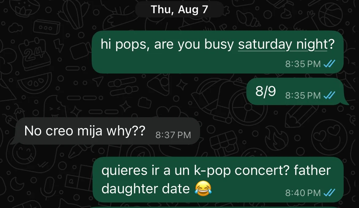 For context: the way my dad and I communicate is by sending each other TikToks & gifs basically every day to check-in. One day, I opened a TikTok from him and it was a Sunghoon fan edit… The timing couldn’t have been more perfect when I had the opportunity of reviewing the show that it would only make sense to take him as my +1. You can’t write this stuff. The stars simply aligned for us. We were both surprised during “ParadoXXX Invasion” specifically. ENHYPEN performed a special, live rock version of it. Me, having heard the song countless times and my dad, having only heard it once before, were blown away by this rendition.